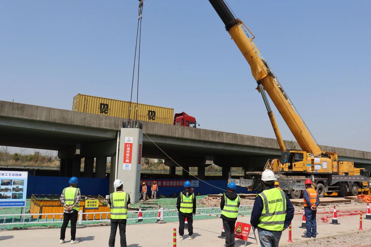 【一线捷报】上海G15公路嘉金段3标首件立柱成功安装
