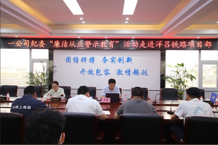 为贯彻落实全面从严治党要求,积极营造项目风清气正、干事创业的良好氛围,切实提高党员领导干部廉洁从业的自律意识。5月18日,一公司纪委廉洁从业警示教育走进洋吕铁路2标项目部。项目部领导班子、各部门负责人、主管等23人参会,会议由项目党支部书记韩来峰主持。